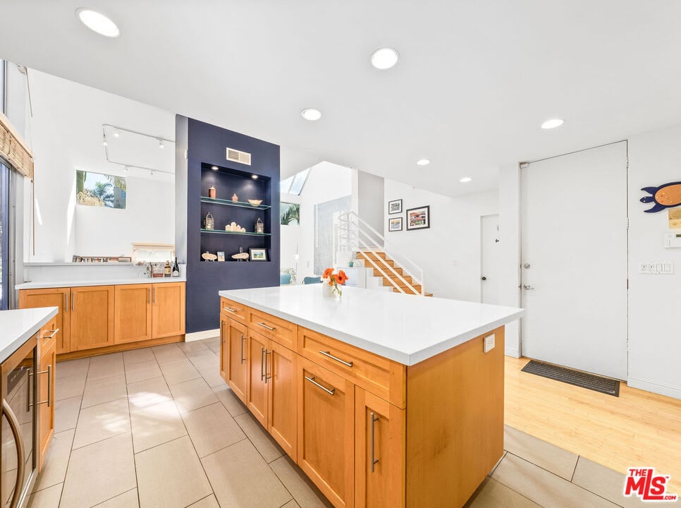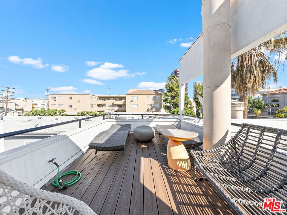 Stunning architectural townhome located in the heart of Brentwood in a 4 unit complex. Designed by Michael Pearce and Associates and featured in Global Architecture Homes Magazine. This light, bright home features an open floor plan downstairs, perfect for entertaining, with hardwood floors, soaring ceilings, and massive skylight. Living room flows seamlessly into the dining room and beautifully remodeled kitchen featuring a large island, stainless steel appliances, and ample storage. Ascend to the main suite with sliding doors opening to the interior balcony that overlooks the living room. Through the large walk in closet, you will enter the master bathroom complete with double sink vanity. Upstairs is the second bedroom with en suite bathroom and the laundry room. Completing this home is a spacious private rooftop patio with city views. Large storage space located in the garage.